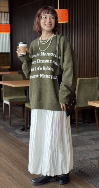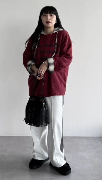 ゆったりとしたワイドなボトムを合わせた、ルーズな着こなしもおすすめ◎