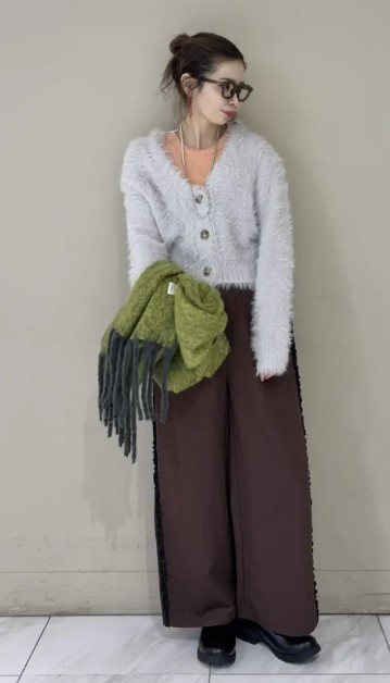 毛足の長いフリンジディテールが、トレンド感のある装いに♪