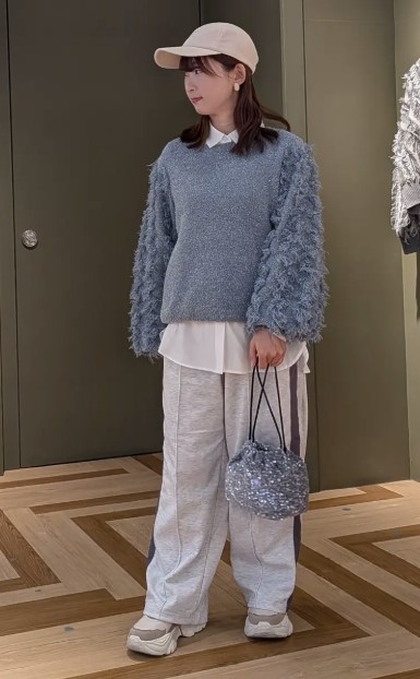 コーデが華やぐラメ素材で、シーズンムード高まる一枚です♪