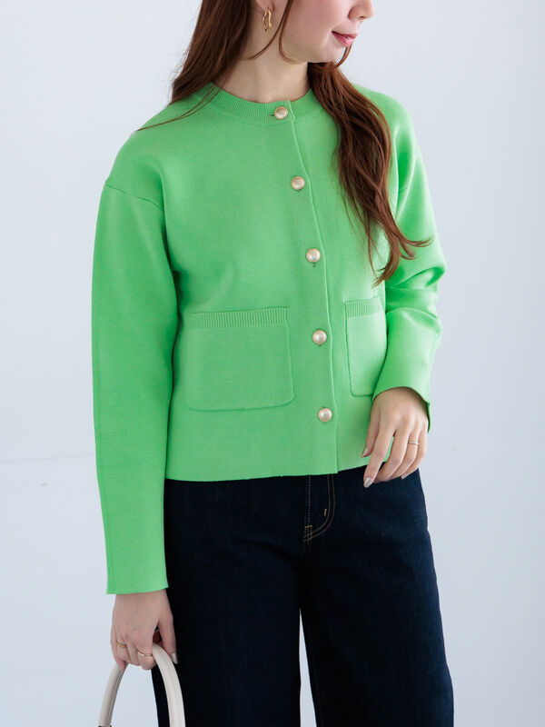 上品な金ボタンが目を惹く