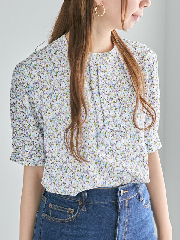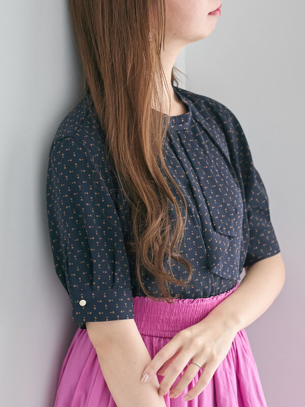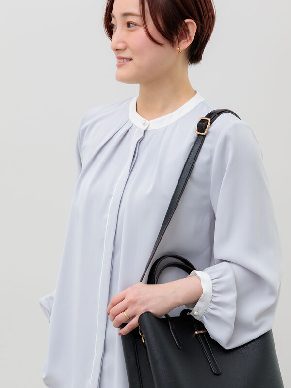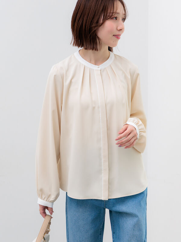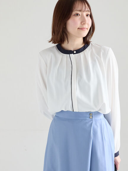 【パール釦配色タックブラウス】