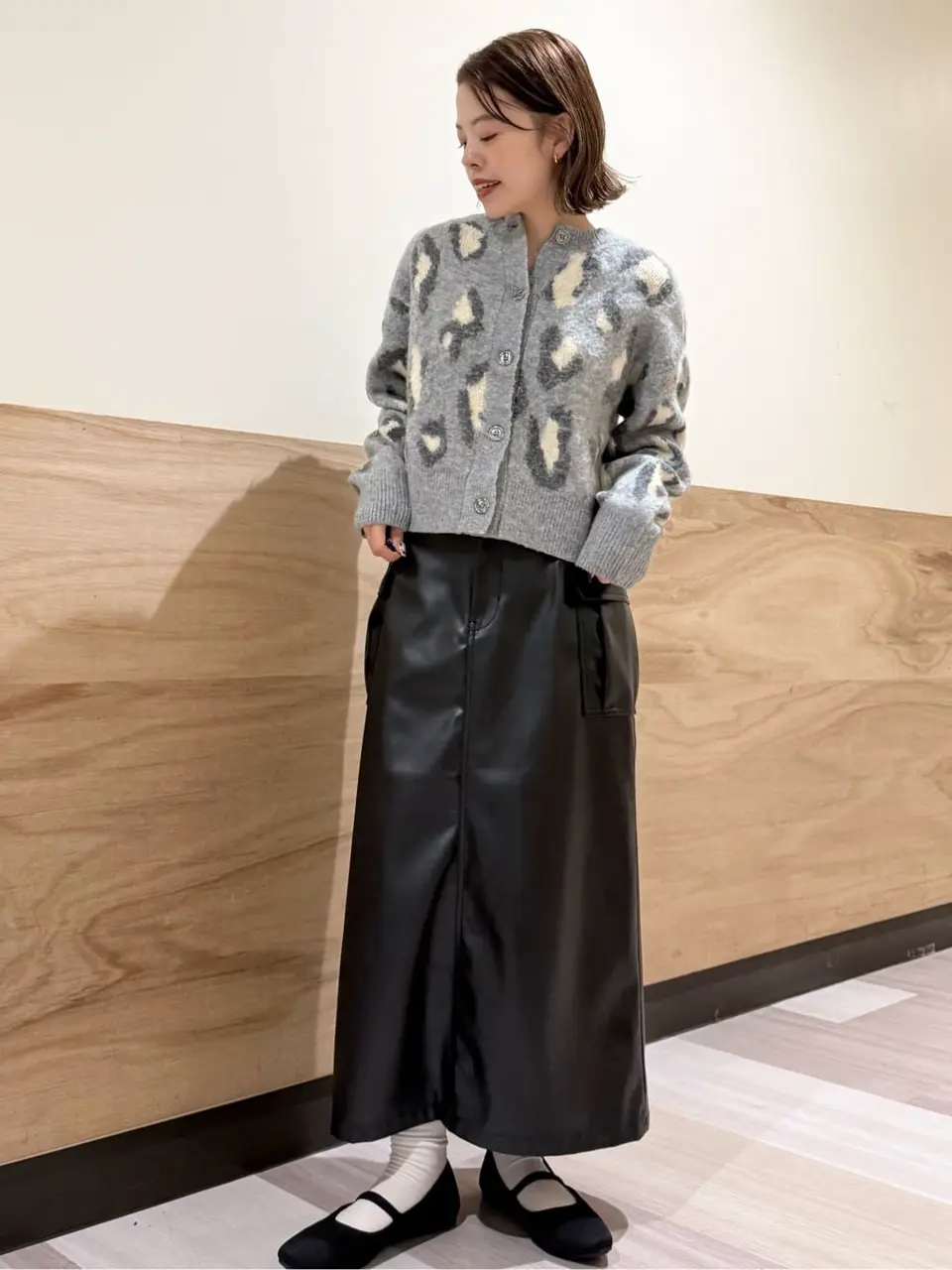 今季トレンドのレオパード柄が目を惹く、ニットカーディガン。