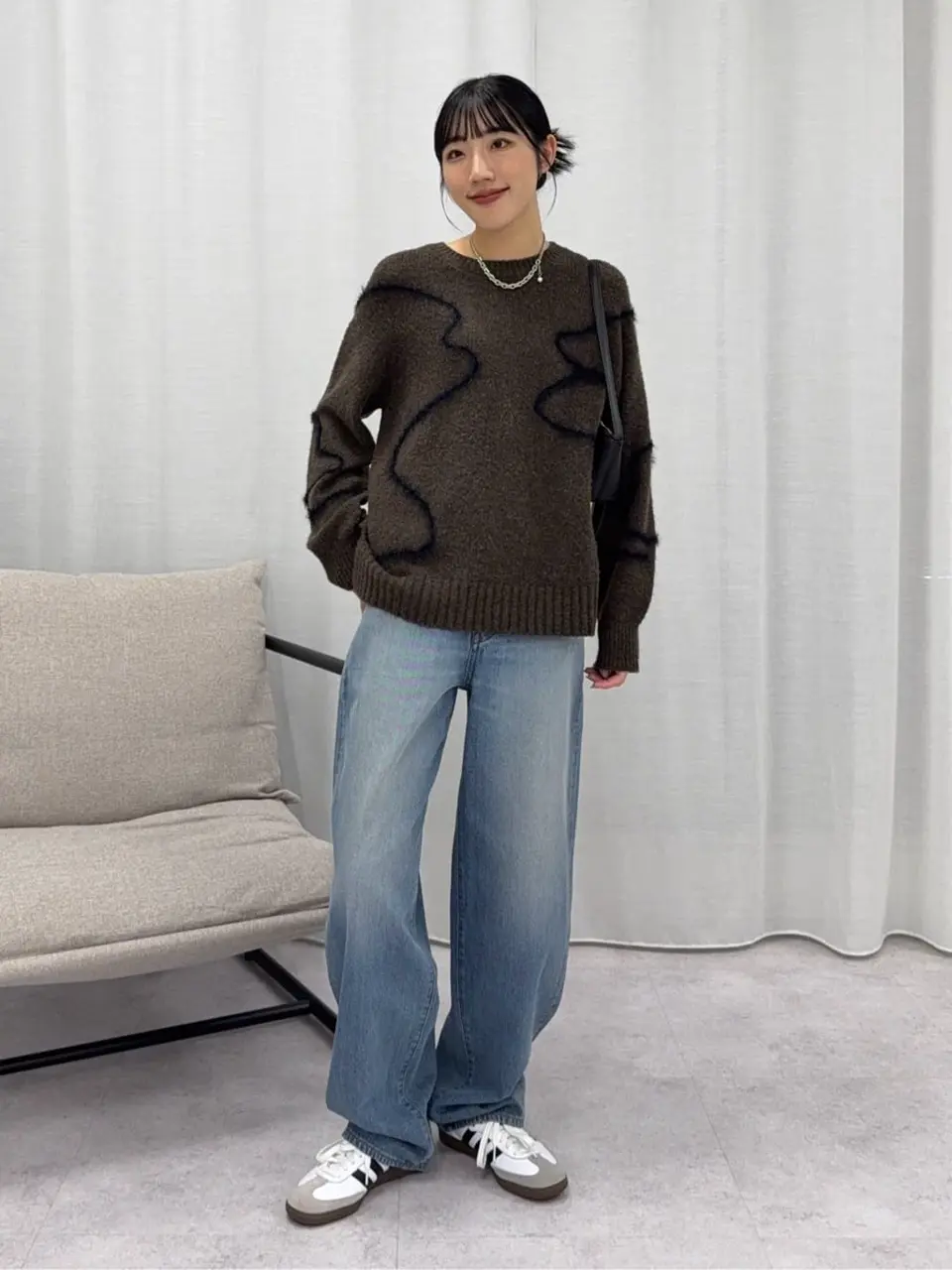 立体ニュアンス柄がアクセントになり、シンプルなボトムスでもコーデが完成♪